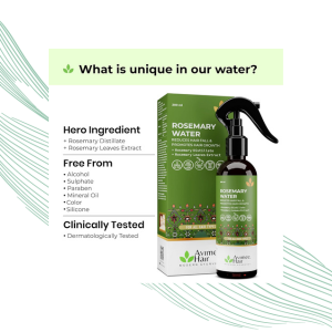 HAIR development: By increasing blood flow to the scalp, the rosemary extract-enriched Avimee Rosemary Water hair spray encourages amazing hair development. With consistent application, observe your hair become fuller and thicker.