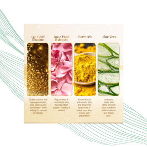The simple, 6-step Gold Facial Kit procedure instantly hydrates and brightens your skin. In only a few minutes, use this ideal PH-balancing facial kit to cleanse and tone, exfoliate and detoxify, soften, nourish, smoothen, moisturize, and brighten your skin. Comfrey Cleanser/Toner, Gold Scrub, Gold Gel, Gold Cream, Gold Peel Off, and Moisturising Gel are the six containers included in this set.